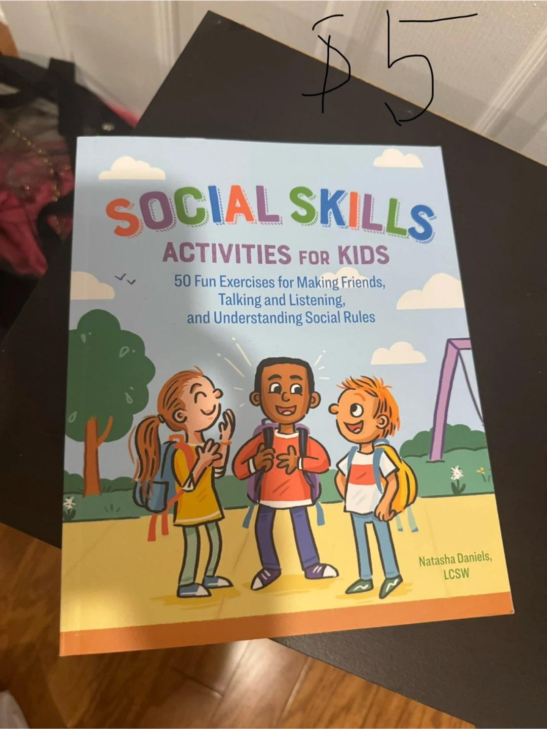 Selling a copy of "Social Skills Activities for Kids" by Natasha Daniels. It includes 50 fun exercises for making friends, talking, listening, and understanding social rules