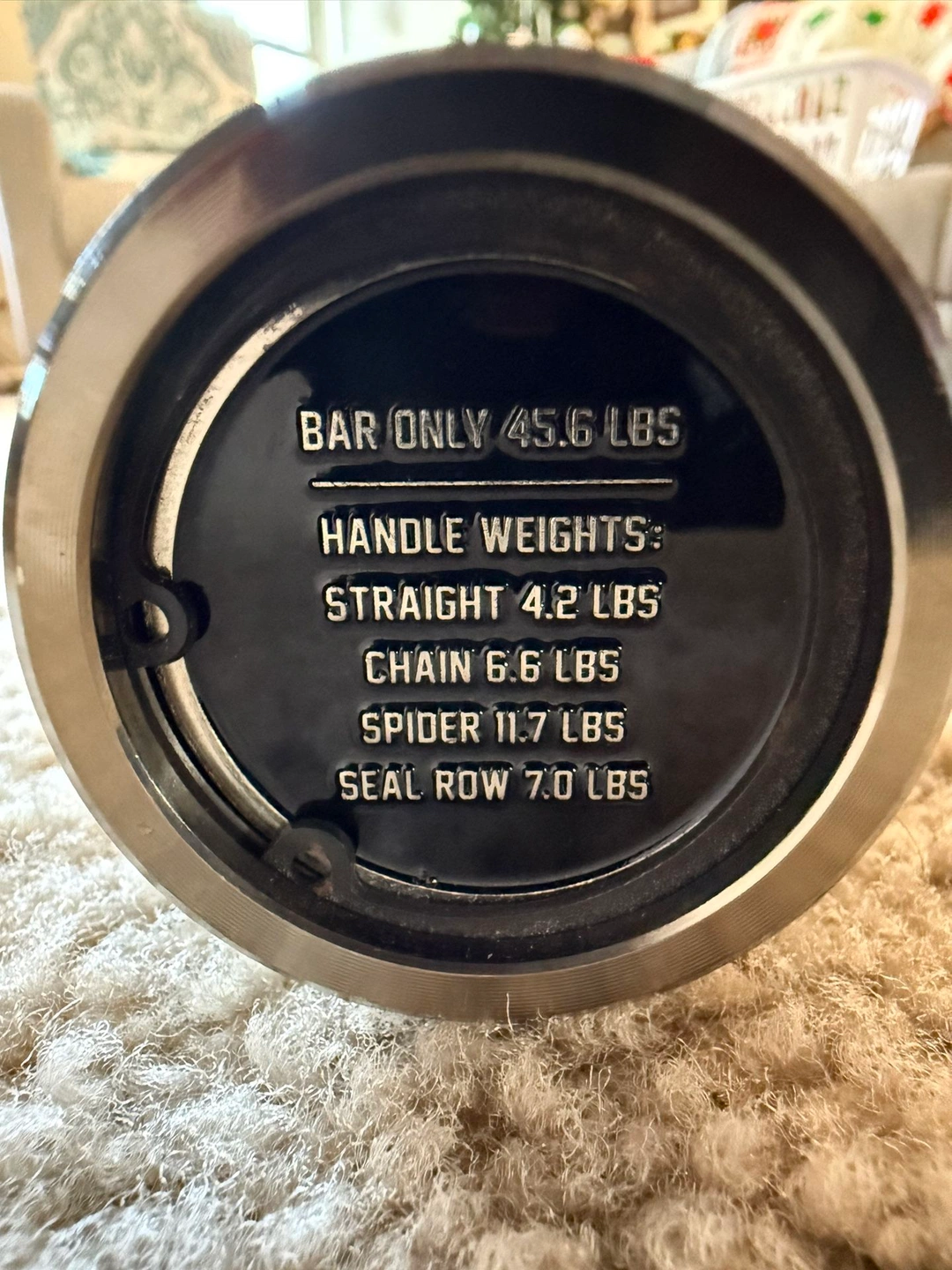 Also, one of the end caps shows the weight with all of the different handles on. Very nice touch.
