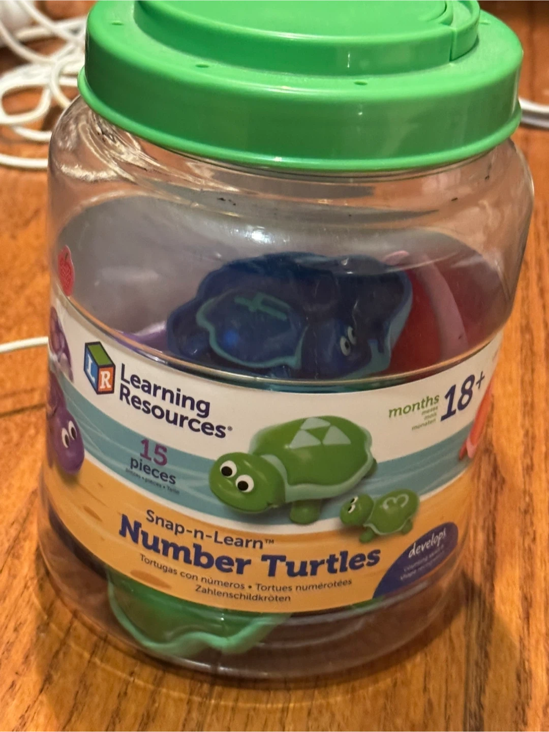 I'm selling a Learning Resources Snap-n-Learn Number Turtles set! This set is great for kids 18+ months and helps them learn numbers in a fun, interactive way. It comes with 15 pieces