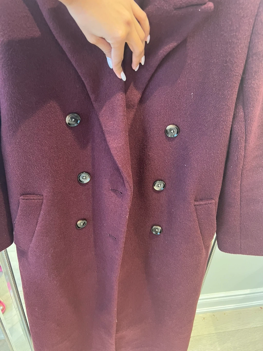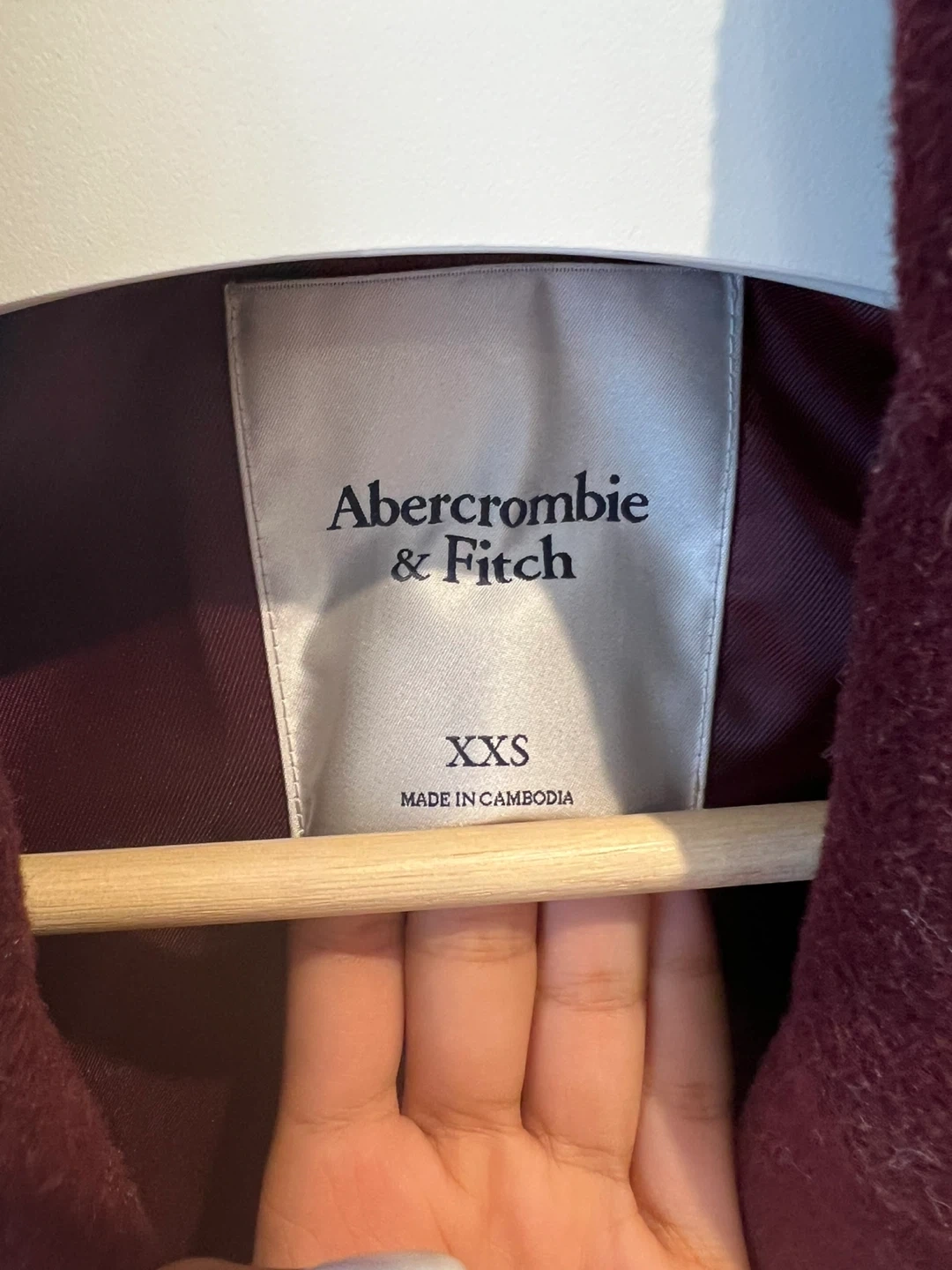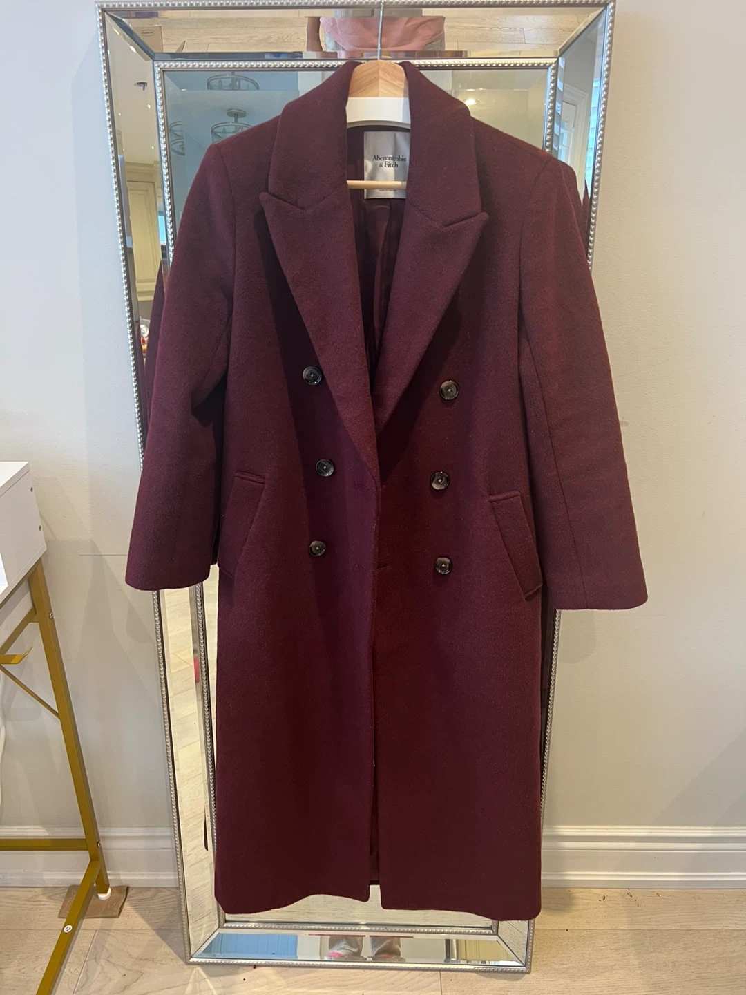 Selling a stylish Abercrombie & Fitch wool coat in a lovely burgundy colour. It's a size XXS and in great condition. Perfect for keeping warm and looking chic!