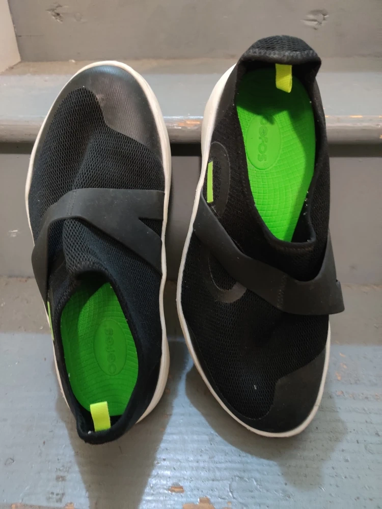 These Soleo slip-on shoes are in great condition and ready for a new home! They feature a comfortable design with a black upper and a convenient slip-on style. Perfect for everyday wear!