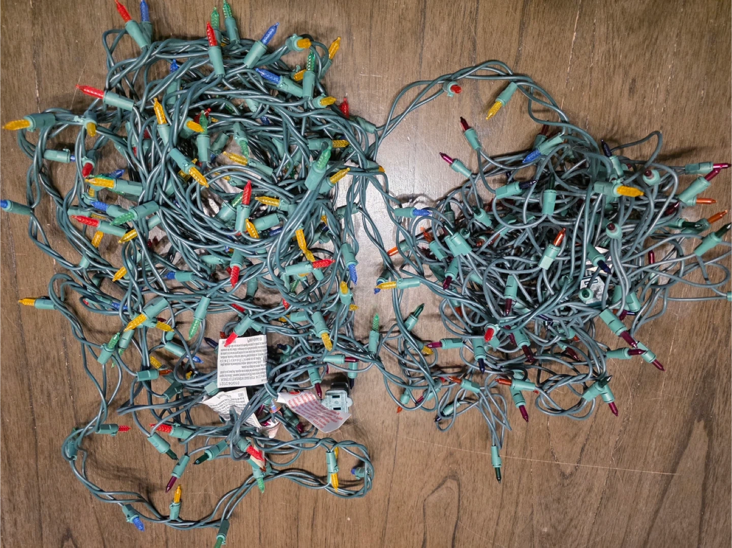 Here's 2 strands of indoor Christmas string lights, 30’ each. They feature a mix of red, yellow, blue, and green bulbs on a green wire. Perfect for adding some festive cheer to your home this holiday season. Asking $20. Located in Cougar Ridge.