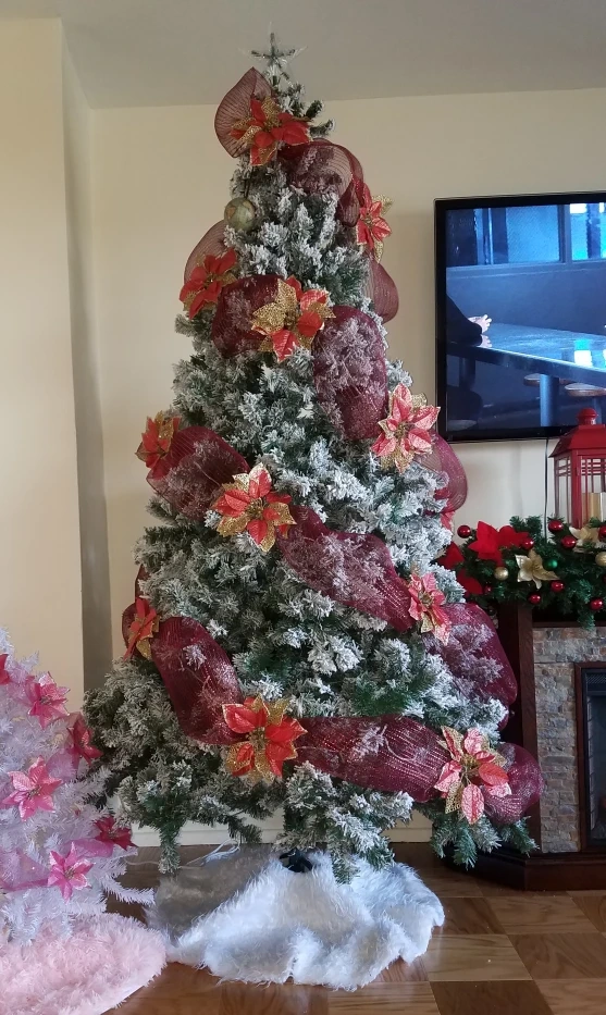 Selling a Christmas tree. Beautiful 8-foot-tall Christmas tree. Green leaves frosted white. No lights. Decorations not included. From a no smoke, no pets home.