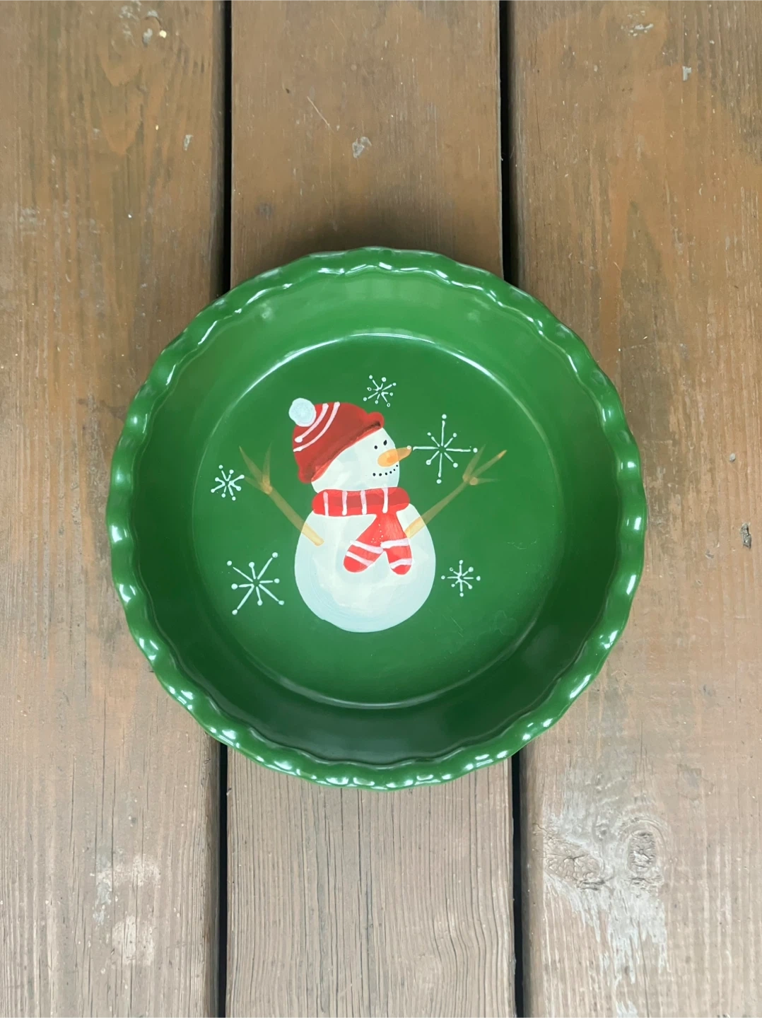 Hand Painted Snowman 9” Stoneware Deep Dish Pie Plate