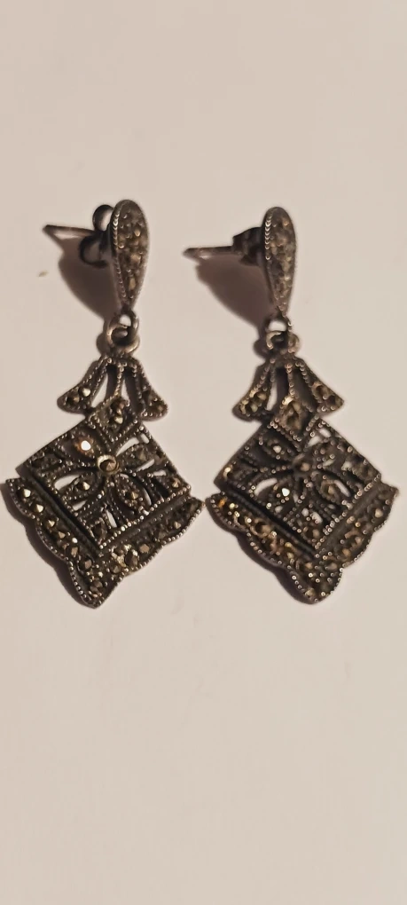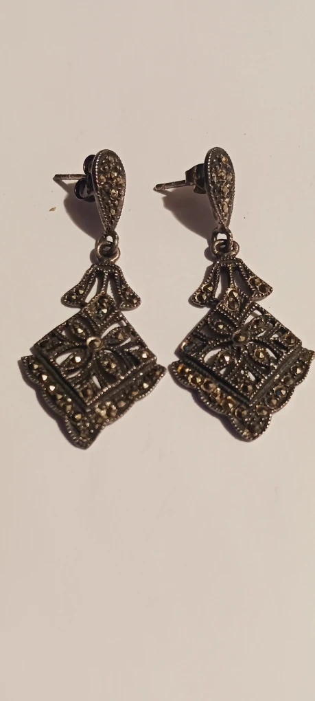 STERLING SILVER 925 MARCASITES DANGLING EARRINGS. They have a marcasite design with a geometric shape. These earrings would be a great addition to any jewelry collection! 1.5" long. Excellent condition. ALL MY PRICES ARE NEGOTIABLE !!