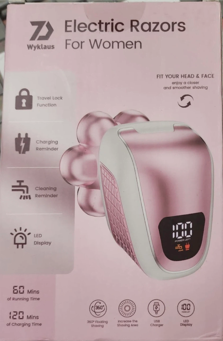 Brand New ( never opened) Wyklaus Electric Razor designed to fit your head and face for a closer and smoother shave. It features a travel lock function, charging reminder, cleaning reminder, and an LED display. It also has a 360° floating shaving head and USB charger. The battery life is about 60 minutes, with a charging time of 120 minutes. Get yours today!
