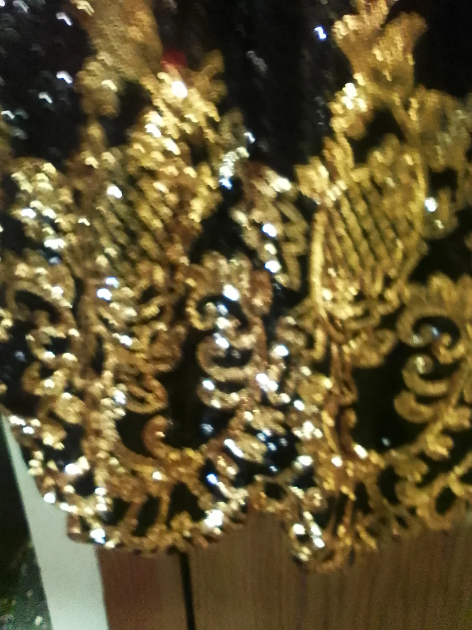 Selling a beautiful black dress with gold sequin detailing! It's perfect for a special occasion or a night out. The dress has a flattering fit and is sure to make you shine