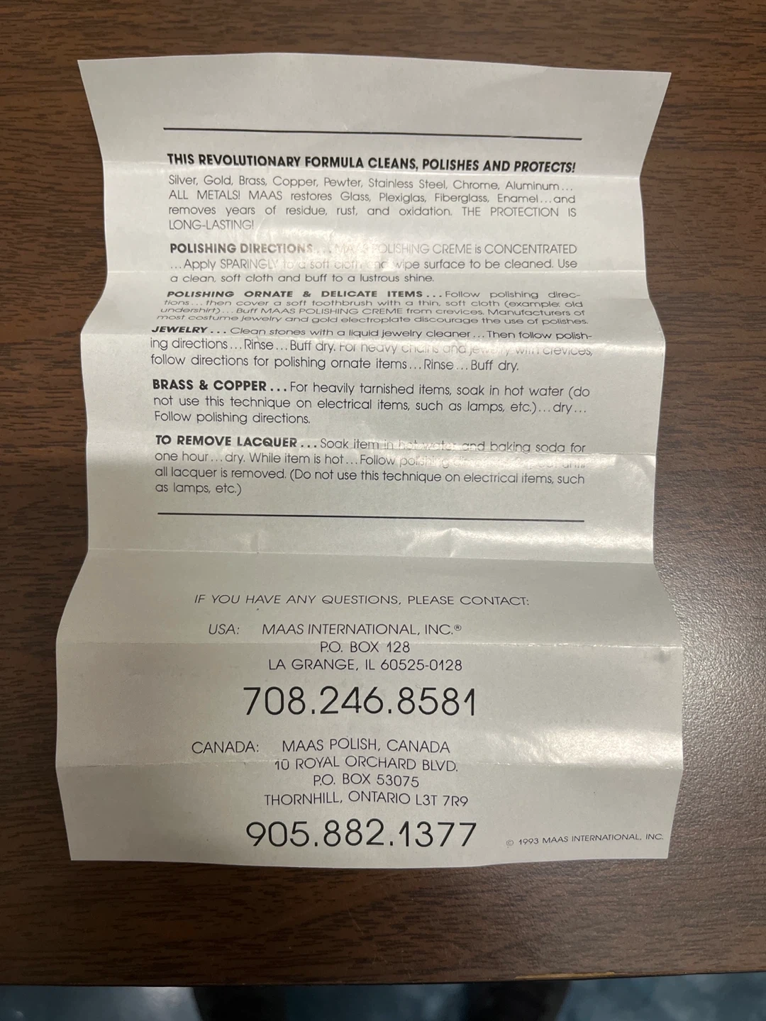 This MAAS polishing creme is concentrated and cleans and protects all metals. It's a fine polishing creme made in Germany, designed to restore and protect silver, gold, brass, copper, pewter, stainless steel, chrome, and aluminum. It removes years of residue, rust, and oxidation, ensuring long-lasting protection