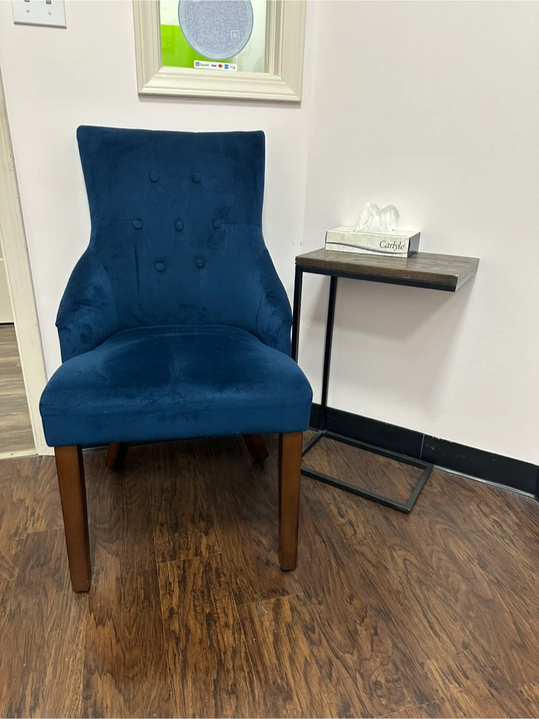 Buy & SellBlue Velvet Accent ChairBlue Velvet Accent Chair$43Selling a comfortable blue velvet accent chair. It's in great condition and would be perfect for a living room or bedroom. The chair has a classic design and is made of a soft velvet materialConditionLike new0 chats·0 favorites·6 viewsSELLERBeckyVernon Hills100 reviewsWHERE TO MEETVernon Hills