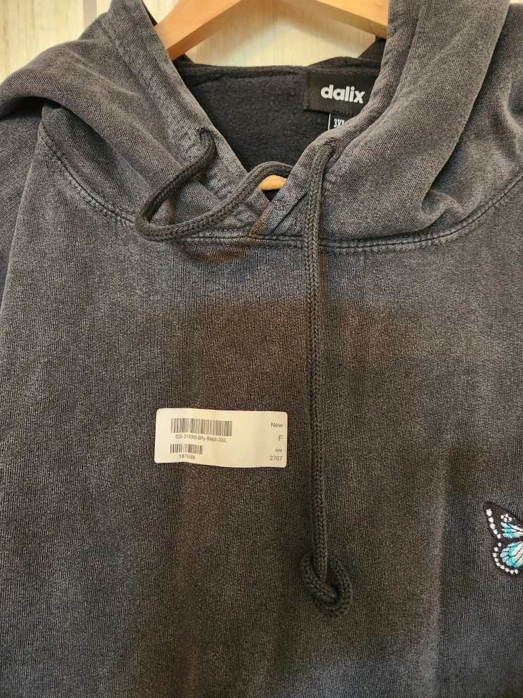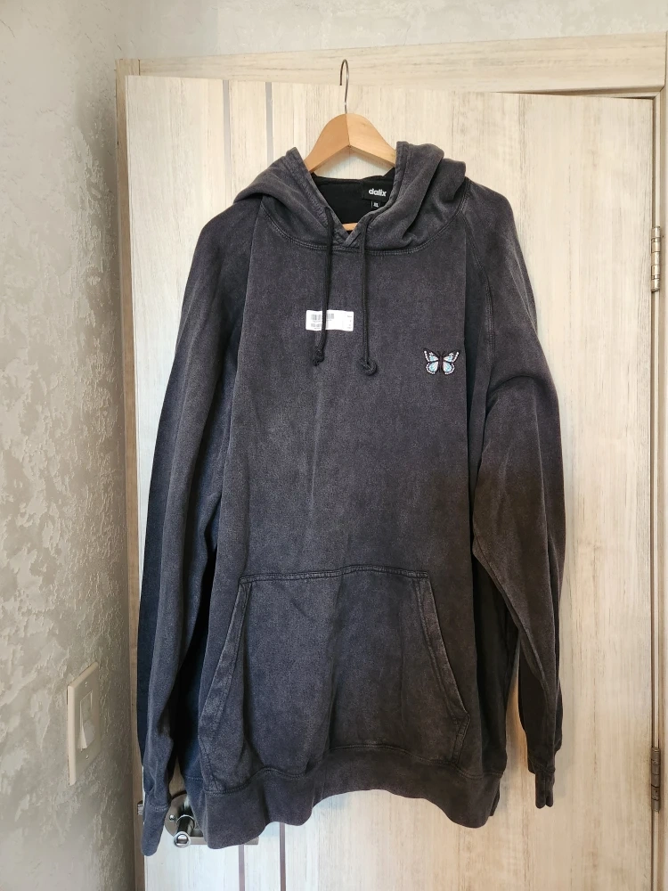 Selling a Dalix hoodie with a vintage wash. It's a size 3XL and new! Features a cool butterfly patch on the front. Perfect for a relaxed, oversized fit
