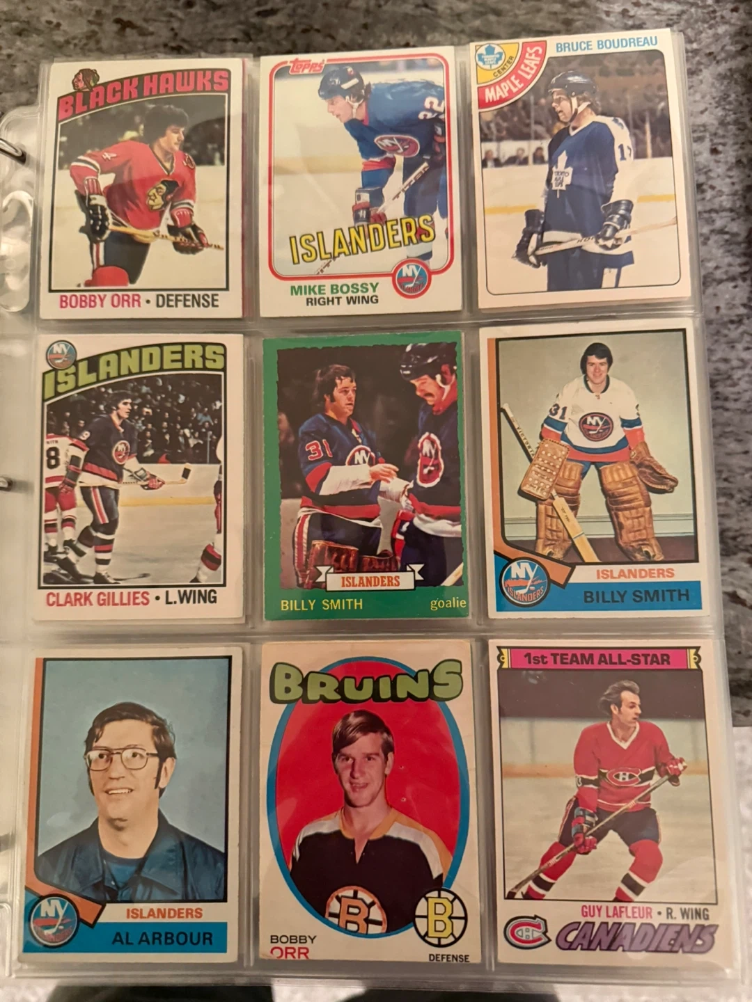 Selling a collection of vintage hockey trading cards. They feature many famous players from different teams and eras. Great for any hockey fan or collector!