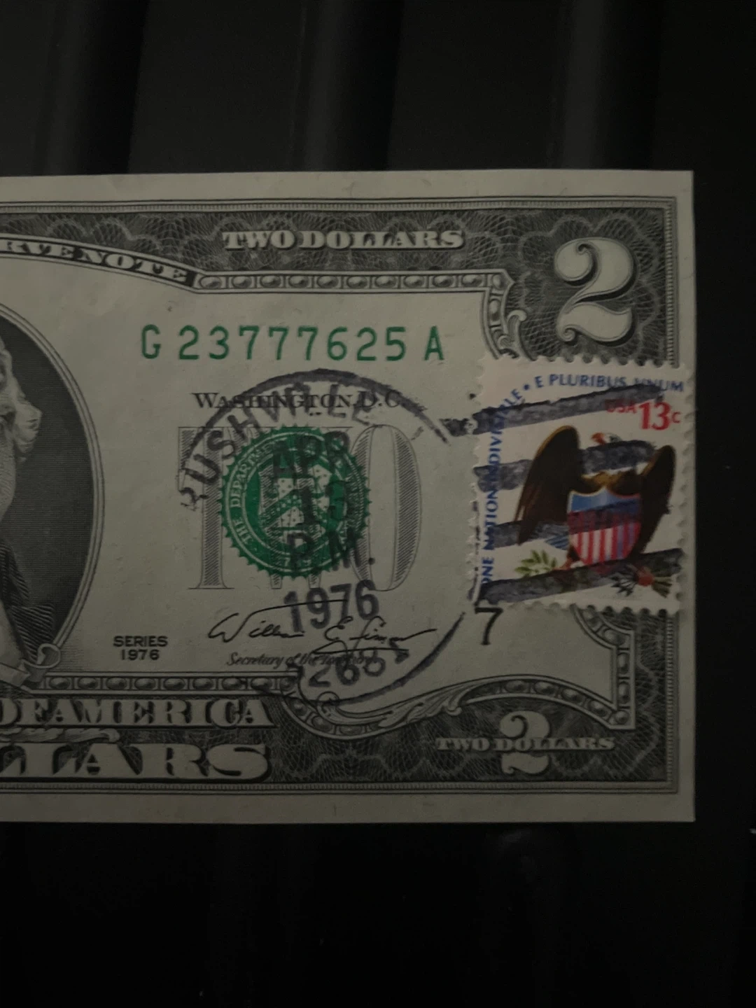 1976 $2 Bill - Stamp 1st Day of Issue- Bicentennial-4/13/76