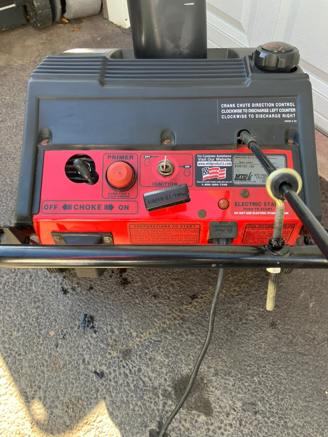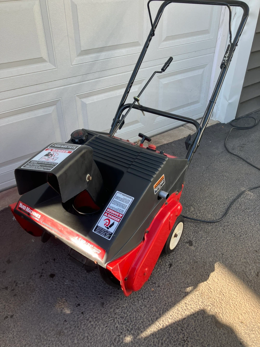 Selling a Yard Machines snow blower, perfect for clearing your driveway this winter! It features a 4.5 HP engine and a 21-inch clearing width. It also has electric start for easy operation