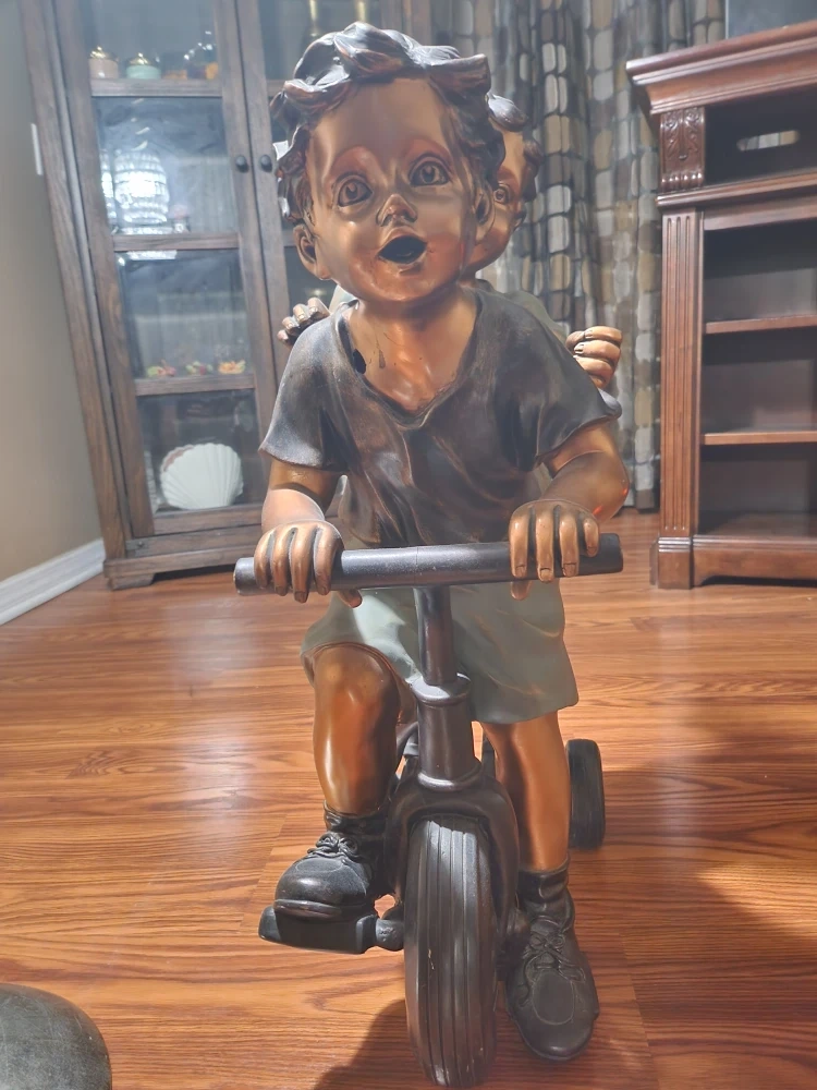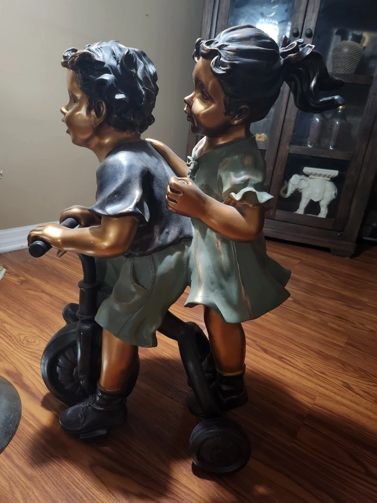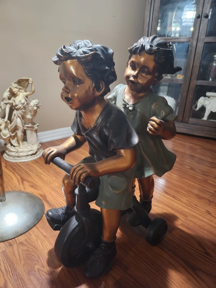 Buy & SellBronze Finish Boy & Girl on Tricycle StatueBronze Finish Boy & Girl on Tricycle Statue$67Here's a bronze-finished statue of a boy and girl riding a tricycle. It's a charming piece that would look great in any home or gardenConditionLike new2 chats·1 favorites·34 viewsSELLERverifiedJaeParkchester1033 reviewsWHERE TO MEETCheck Location