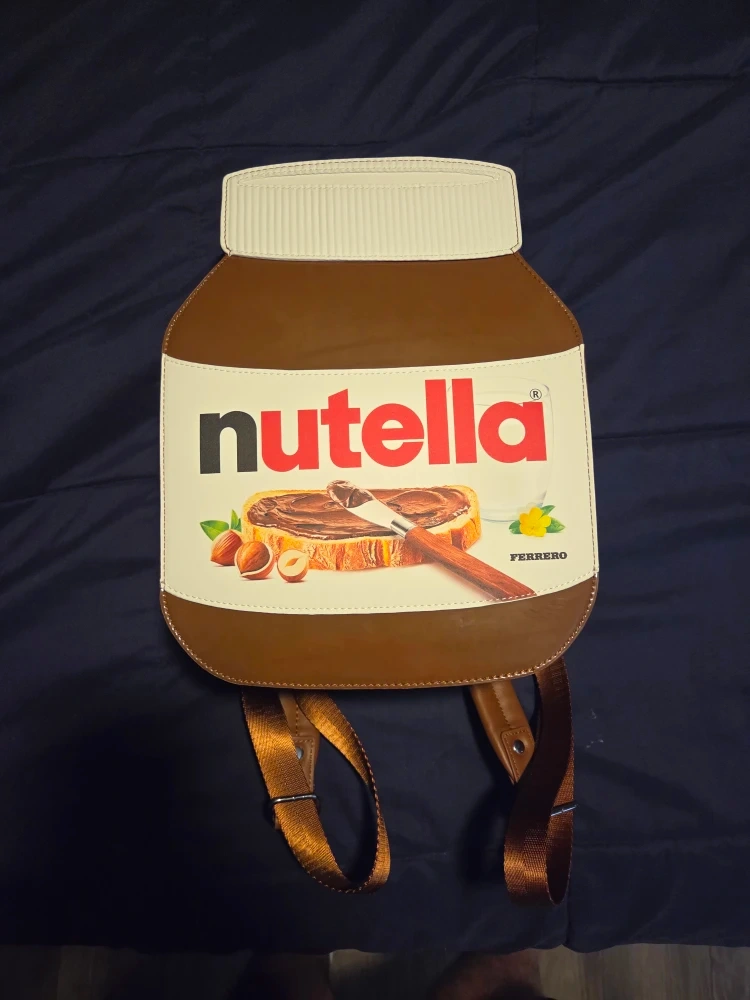 I'm selling a super cute Nutella Loungefly backpack! It's brand new, never used and features a fun Nutella jar design. The interior lining has a Nutella print too. It also has a cute Nutella jar zipper charm!