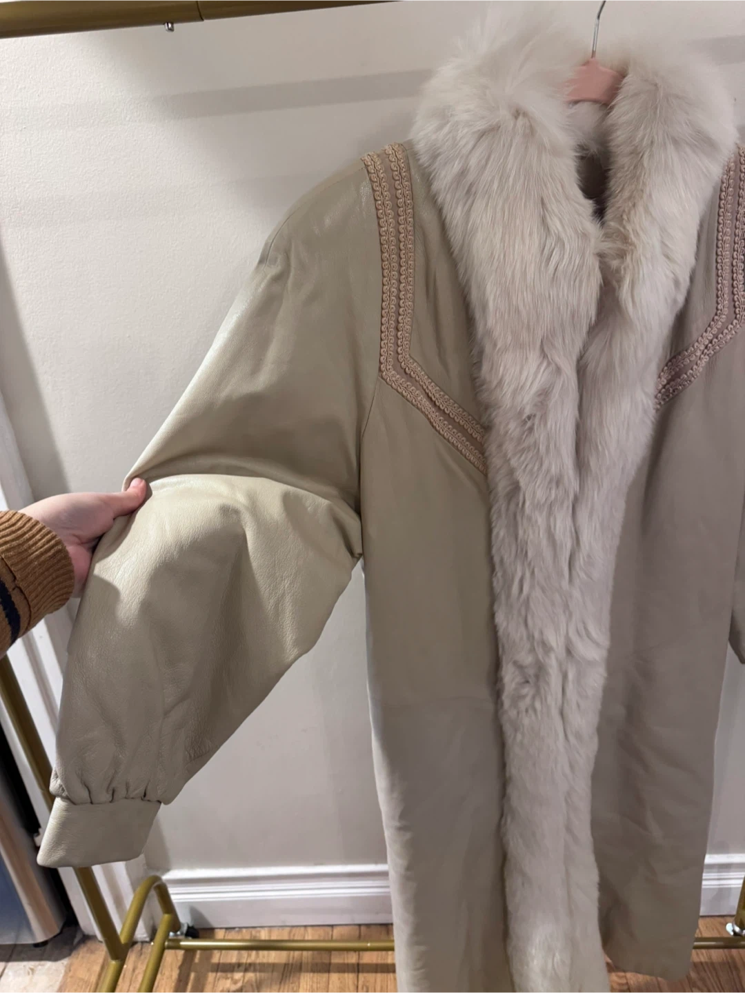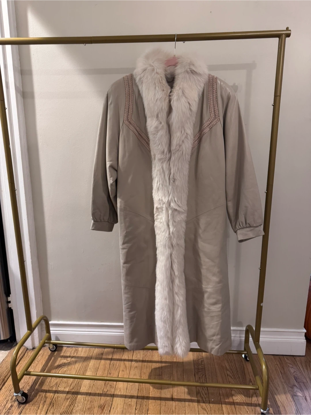 Here's a beautiful coat from Talk of the Walk in Atlantic City! It features a lovely fur trim that adds a touch of elegance. Perfect for staying warm and stylish during colder weather