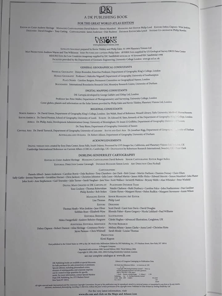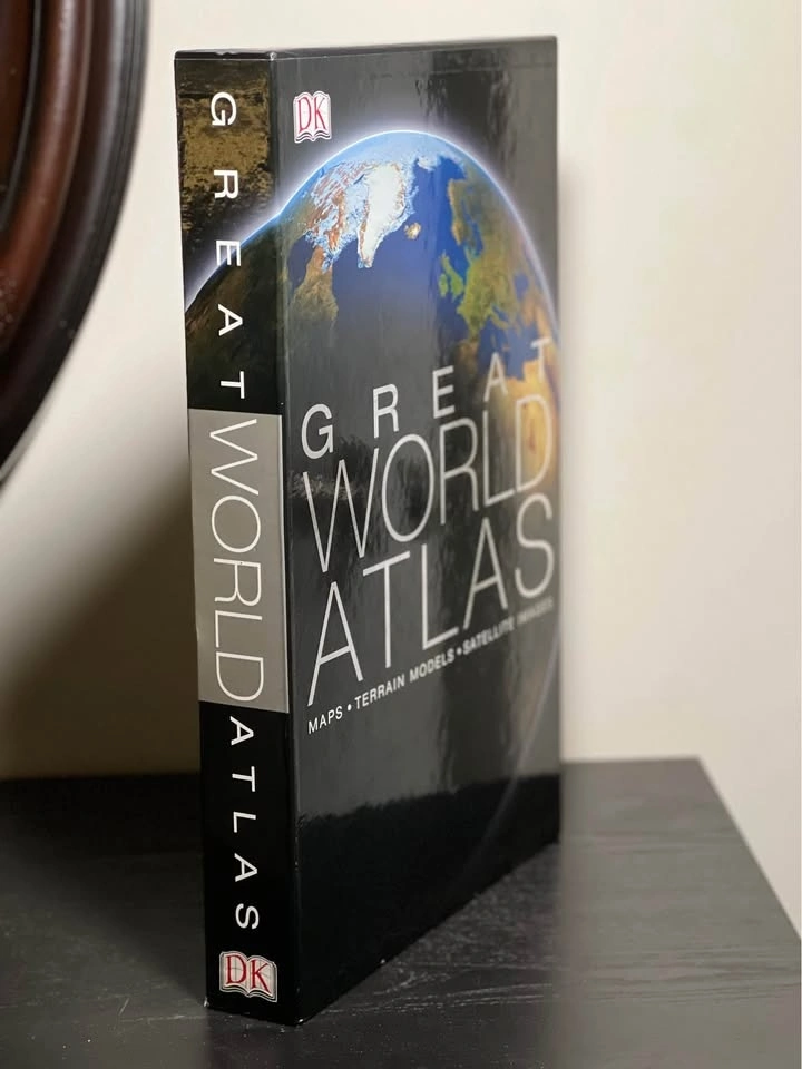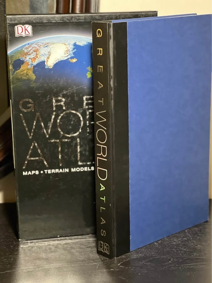The Great World Atlas by Dorling Kindersley Publishing Staff (2004) Hard Cover. Very good condition. Large book measures 18"x12"x2". Some wear and tear on slip cover. See photos. Pickup is 58th and 7th Ave midtown Manhattan