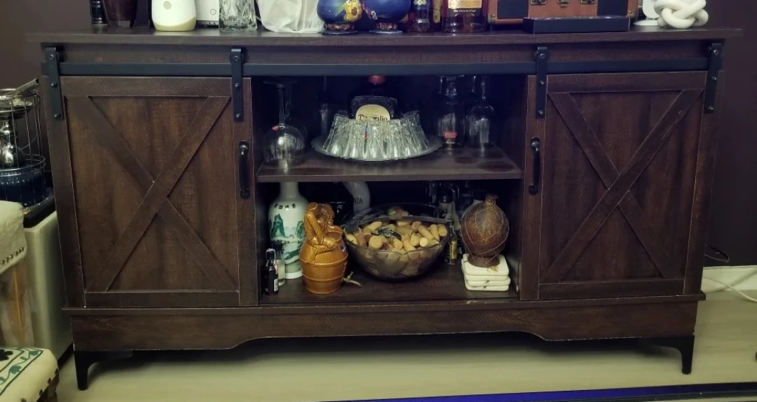 Selling a stylish brown wood cabinet with sliding doors! It's in great shape and perfect for adding storage and a rustic touch to any room. The sliding doors make it easy to access items while saving space. This cabinet is sturdy and well-made.