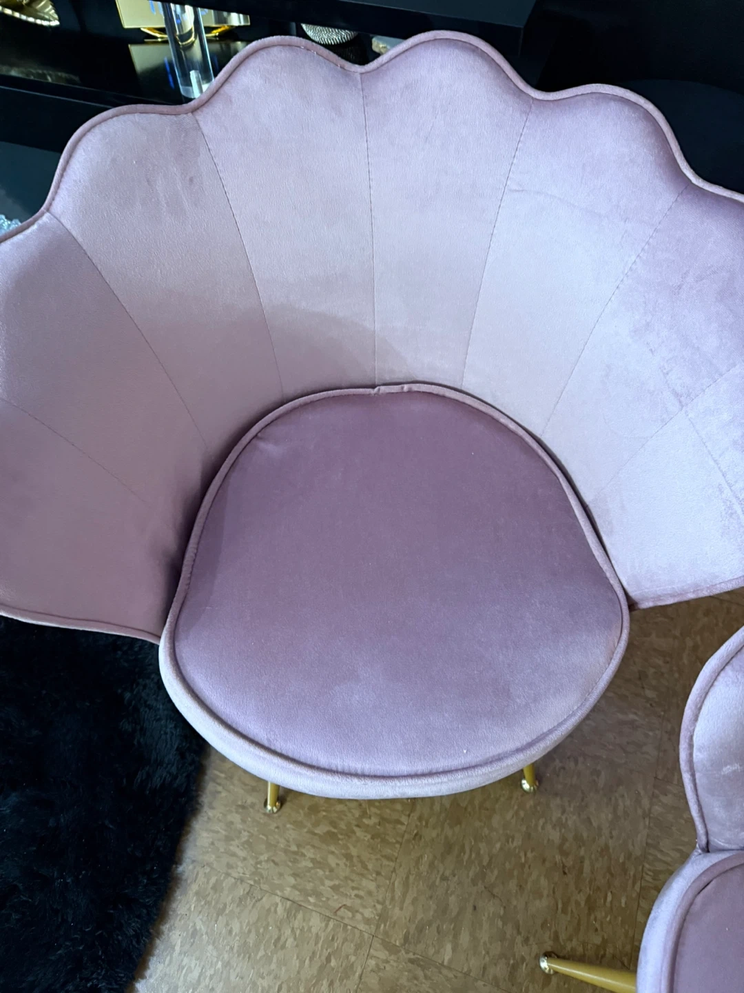 Selling a cute pink velvet shell accent chair! It's in great condition and would look lovely in any room. The soft velvet material and unique shell design make it a stylish and comfortable addition to your home