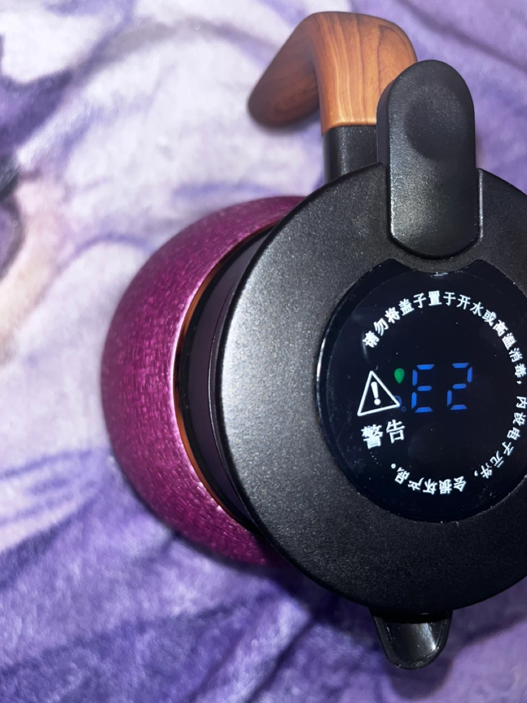 I'm selling a thermal carafe in a lovely purple color with a wooden handle. It's perfect for keeping your beverages hot or cold for extended periods. It has a sleek design and is easy to use. Great for serving coffee, tea, or other drinks!