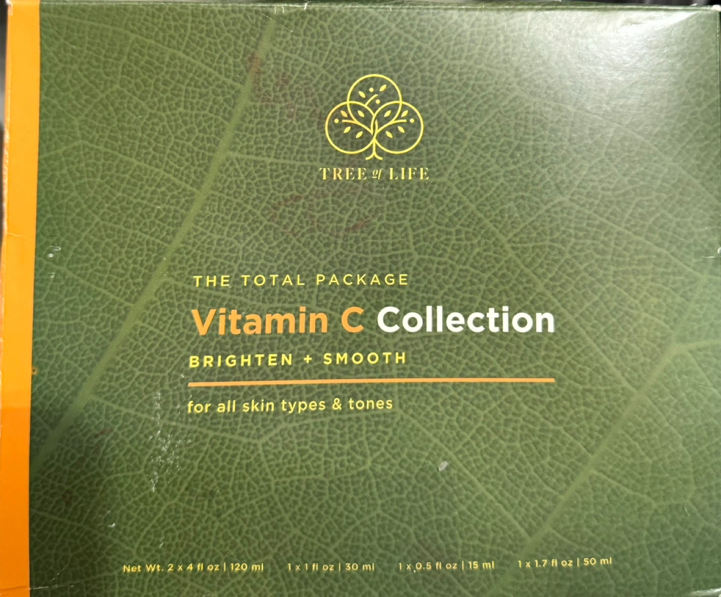 Get the total package with the Tree of Life Vitamin C Collection! This set is designed to brighten and smooth, working for all skin types and tones. It reduces the look of dark spots and evens skin tone, while also reducing the appearance of puffiness and fine lines. This collection removes impurities and lifts away makeup and excess oil, leaving your skin feeling refreshed!