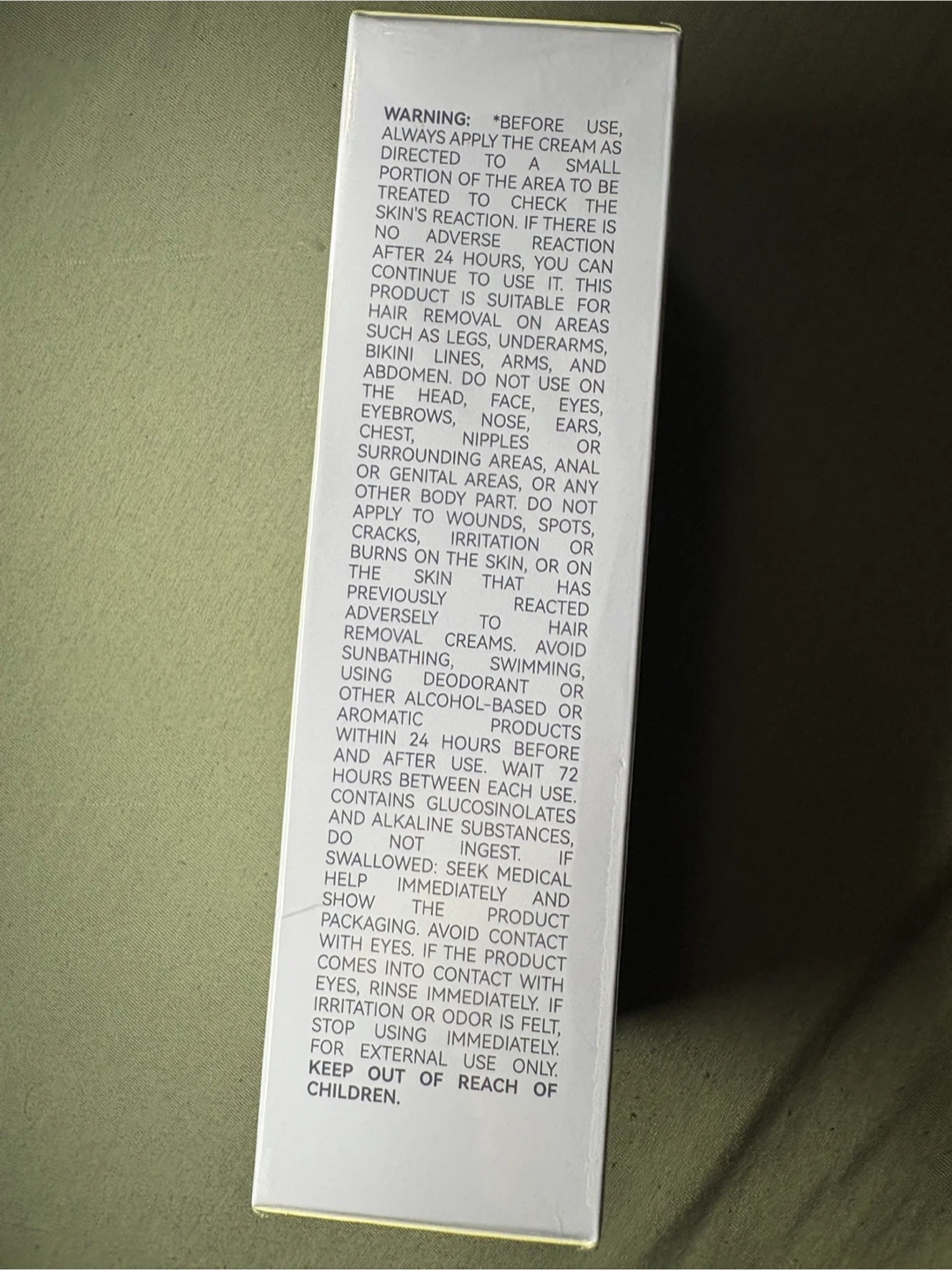 This gentle skin care formula, scented with iris and suede, spreads on evenly and removes hair in minutes. It's lightly soothing and leaves skin feeling moisturized after hair removal. The product is 3.38 fl oz/100ml. The expiration date is 2028 June 30
