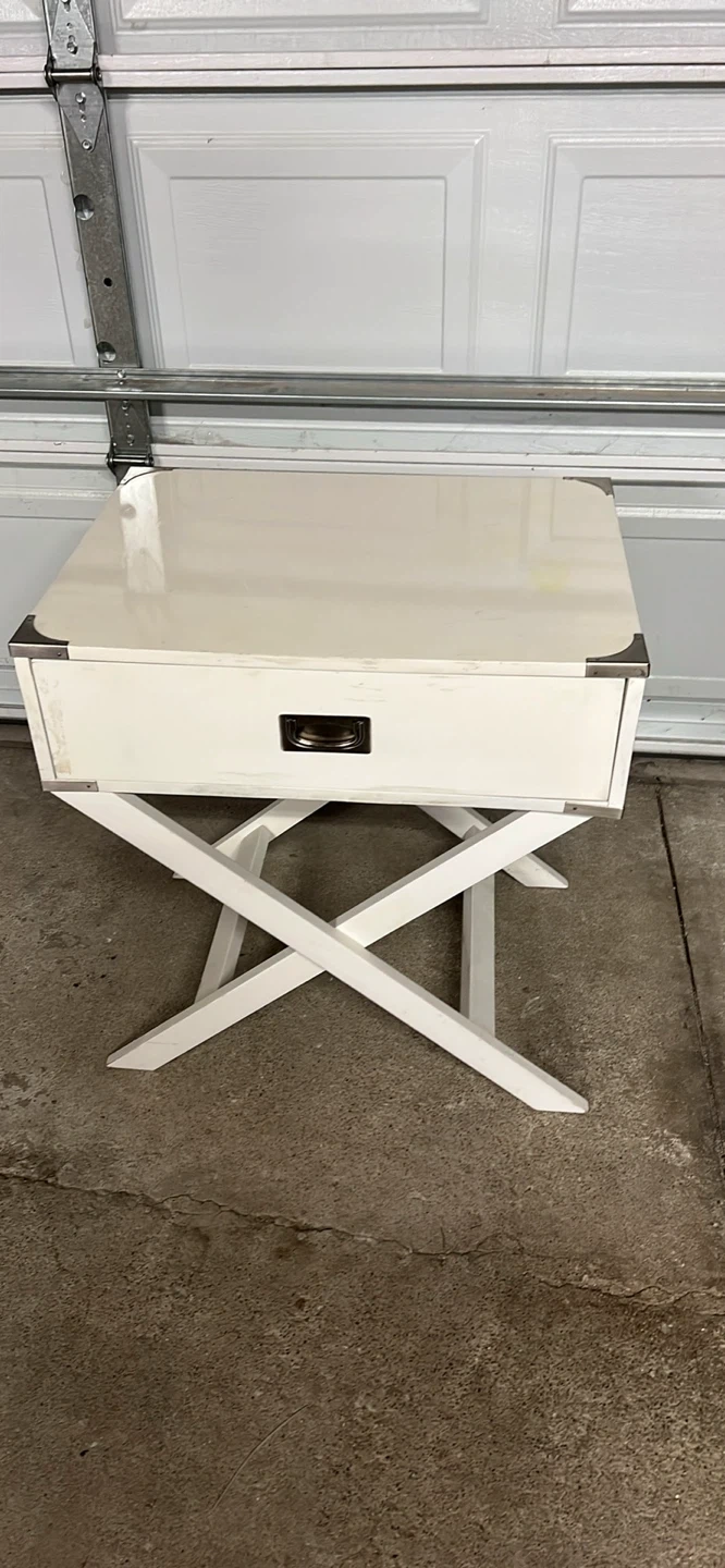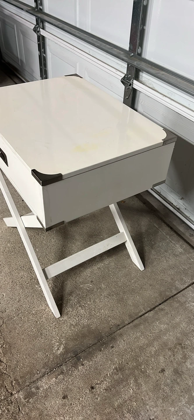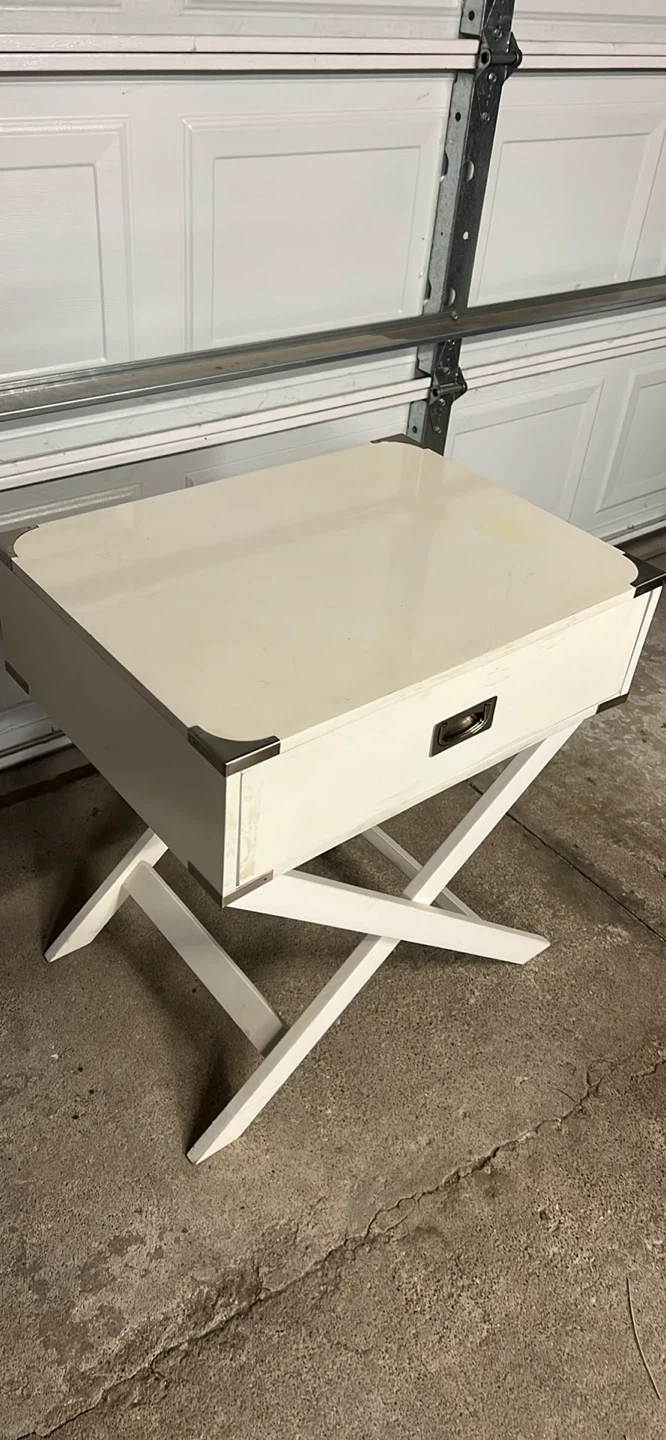 Buy & SellWhite End Table with DrawerWhite End Table with Drawer$40Selling a cute little white end table! It has a drawer for storage and a unique x-shaped leg design. It's in used condition, with some wear and tear, but still has plenty of life left0 chats·2 favorites·21 viewsSELLERMarcos vClearing150 reviewsWHERE TO MEETCheck Location