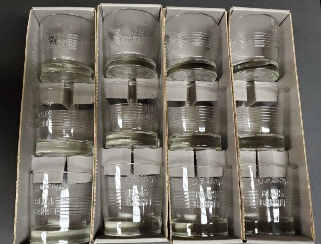 Selling 2 sets (3 glasses per set) of Jameson Black Barrel whiskey glasses! These glasses feature the 'Jameson Black Barrel' logo. They are new/never used. Perfect for enjoying your favorite whiskey. Each set is $10 or both sets for $15.