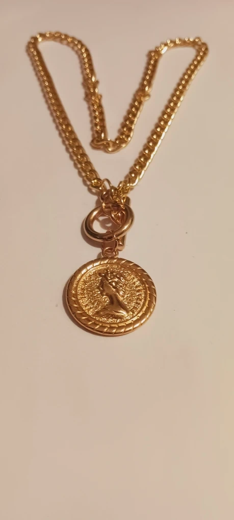 Buy & SellNEW !! Cute Gold Coin Pendant NecklaceNEW !! Cute Gold Coin Pendant Necklace$5NEW !! Selling a gold tone necklace with a coin pendant. It's in great condition and ready to add a touch of elegance to your style! 18" long. ALL MY PRICES ARE NEGOTIABLE !!ConditionNewSize18"0 chats·2 favorites·21 viewsSELLERMaryAstoria1000+708 reviewsWHERE TO MEETThe Shady Lady