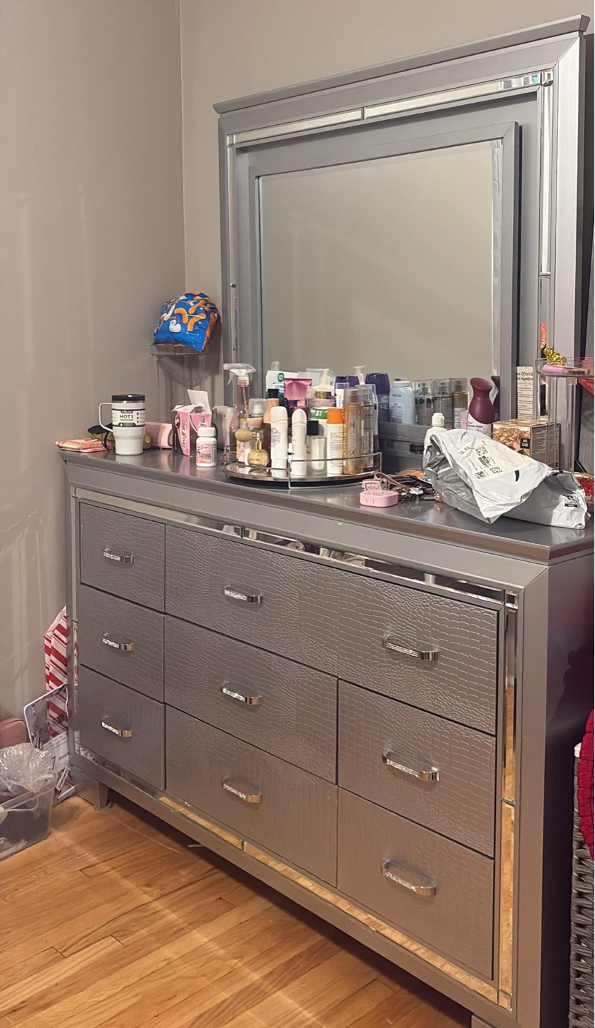 Buy & SellSilver Bedroom Set - Bed & DresserSilver Bedroom Set - Bed & Dresser$500Selling a silver bedroom set that includes a bed and dresser. The set has a modern look with a mirrored trim. It's in good condition and ready to go to a new home! Mattress not includedConditionGood0 chats·0 favorites·5 viewsSELLERPaola VargasSouth Side100 reviewsWHERE TO MEETCheck Location