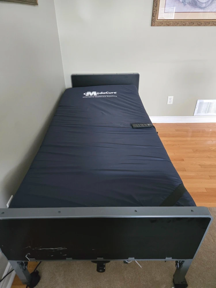 Selling a MedaCure adjustable hospital bed. It features a remote control for easy adjustments and is in great condition. Has side rails yo keep you safe. Purchased last year brand new $1,800.00. Will throw in 2 sets of sheets as well.. Perfect for home care or anyone needing extra support!