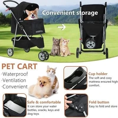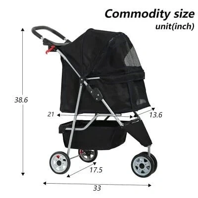 3 Wheels Travel Folding Pet Stroller for Small Medium Dog Cat Jogger Stroller..