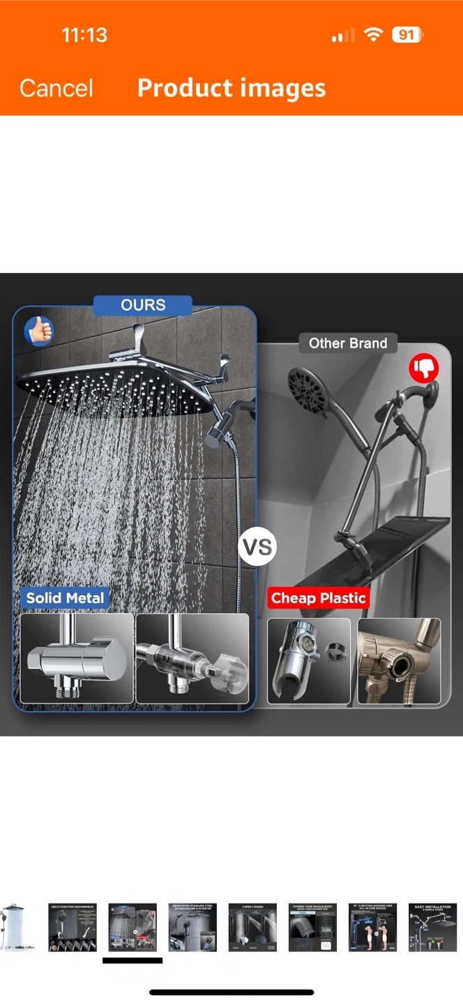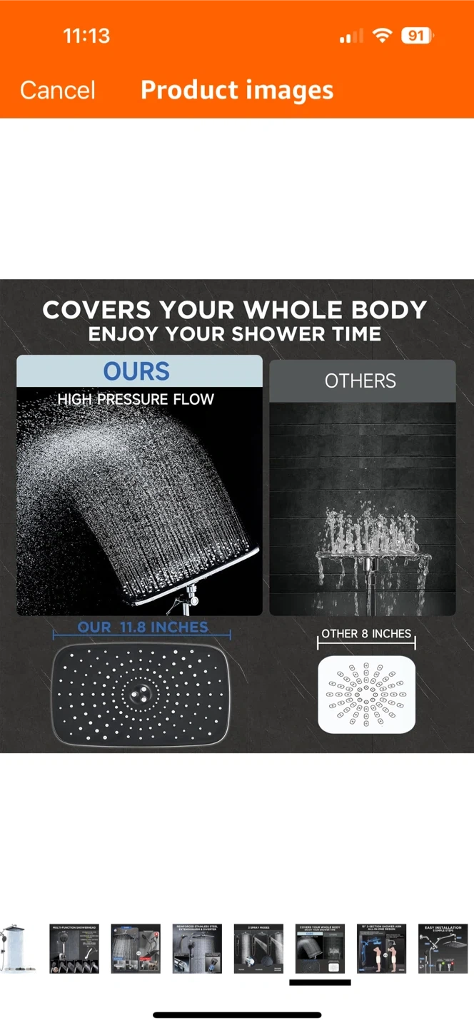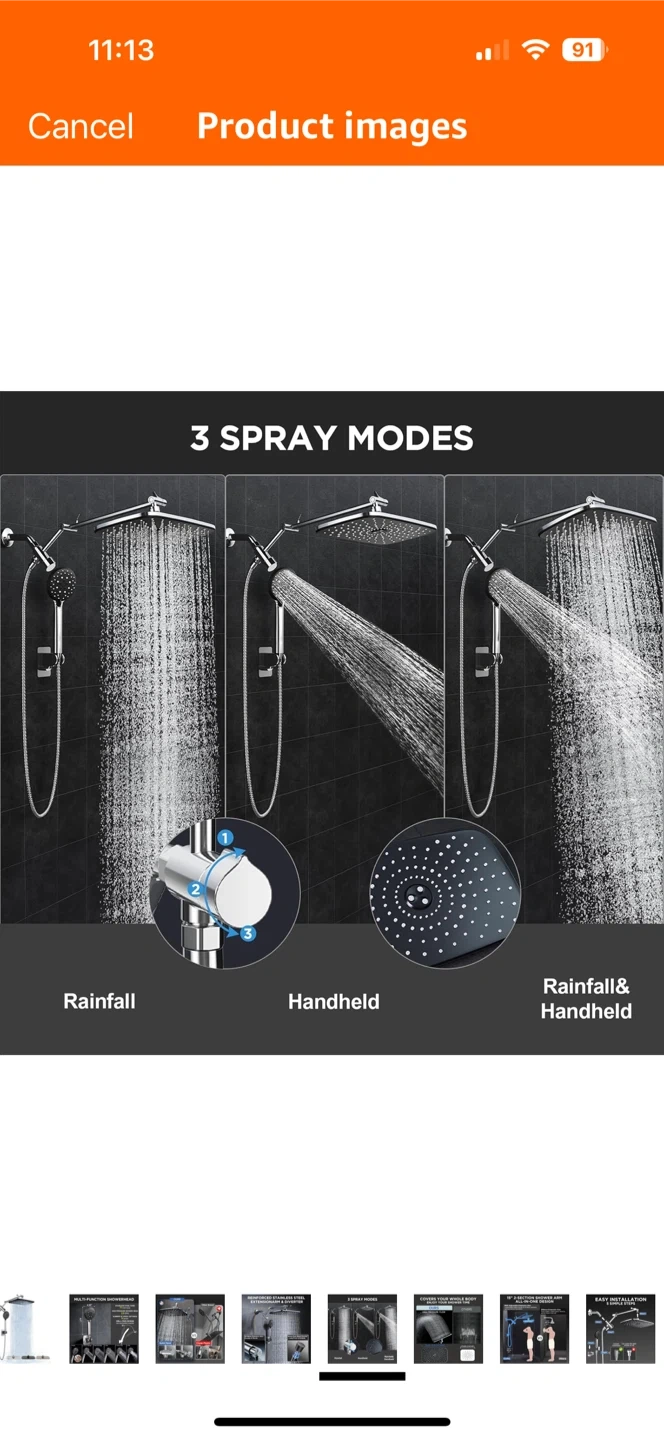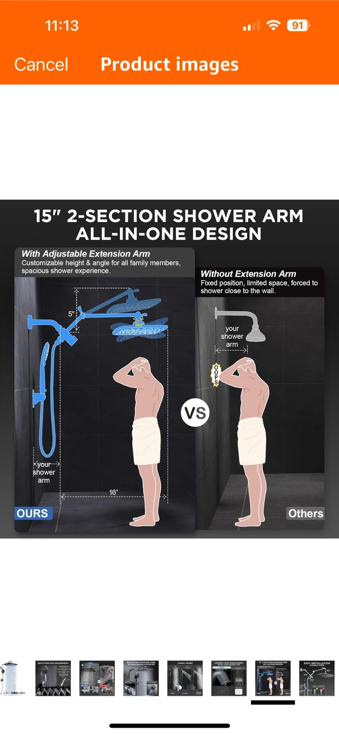 This multi-function showerhead has 6 spray settings to cover your whole body and enjoy your shower time! The stainless steel hose is 71 inches long, and the high-pressure shower head is 2.5 GPM. It also has a drill-free design.