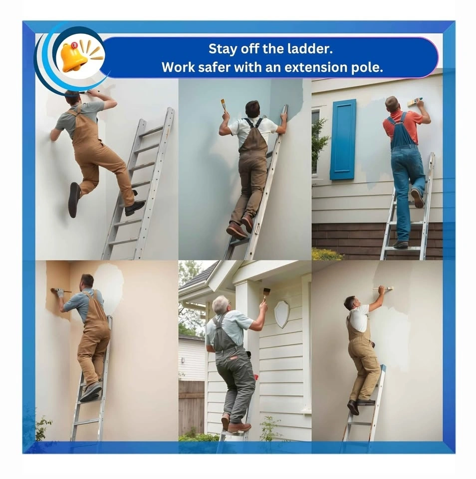Versatile Extension Pole: Our lightweight telescopic extension pole adapts seamlessly to your needs, making it an essential tool in your wall painting supplies. It extends from 5 to 20 feet and, with attachments when standing, reaches up to 23 feet.