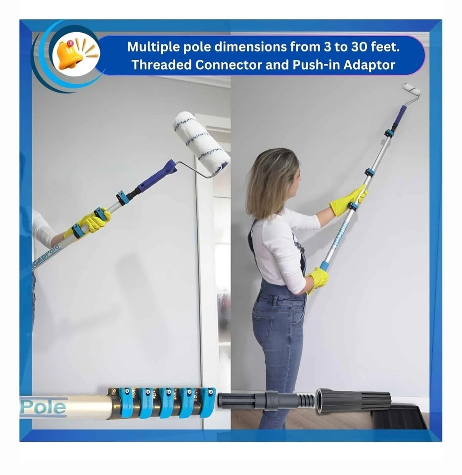 6-20 foot Telescopic Extension Pole with Paint Roller Adaptor, Microfibre Feather Duster, Acme & Push-in Connectors, Lightweight Telescoping Pole for Paint Roller Extension Pole – IGADPole
