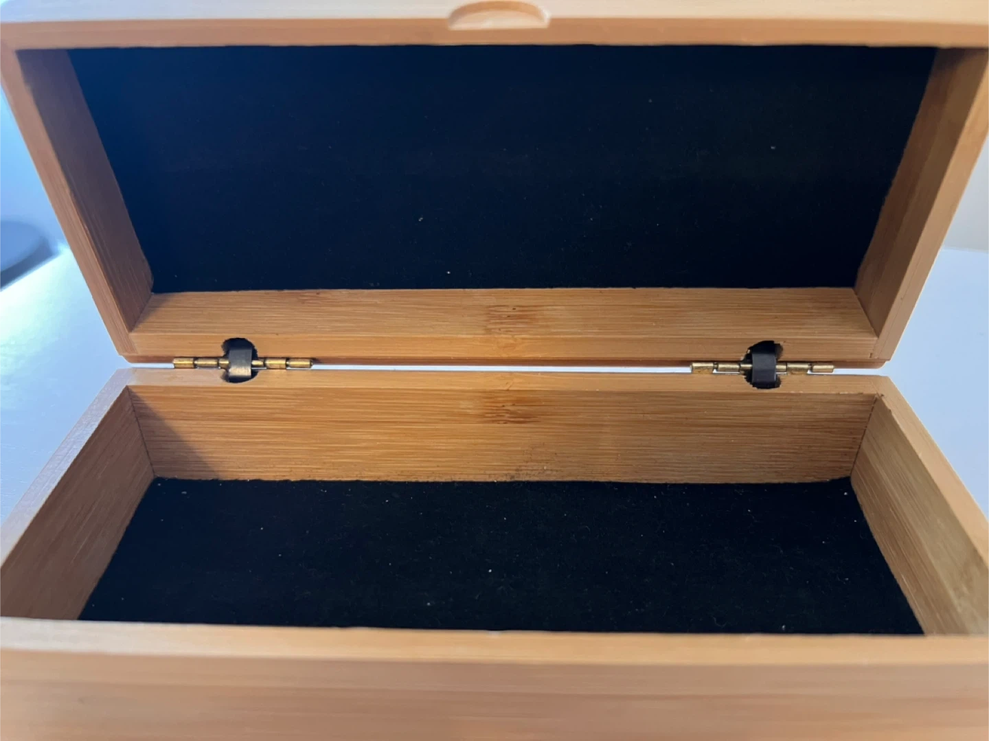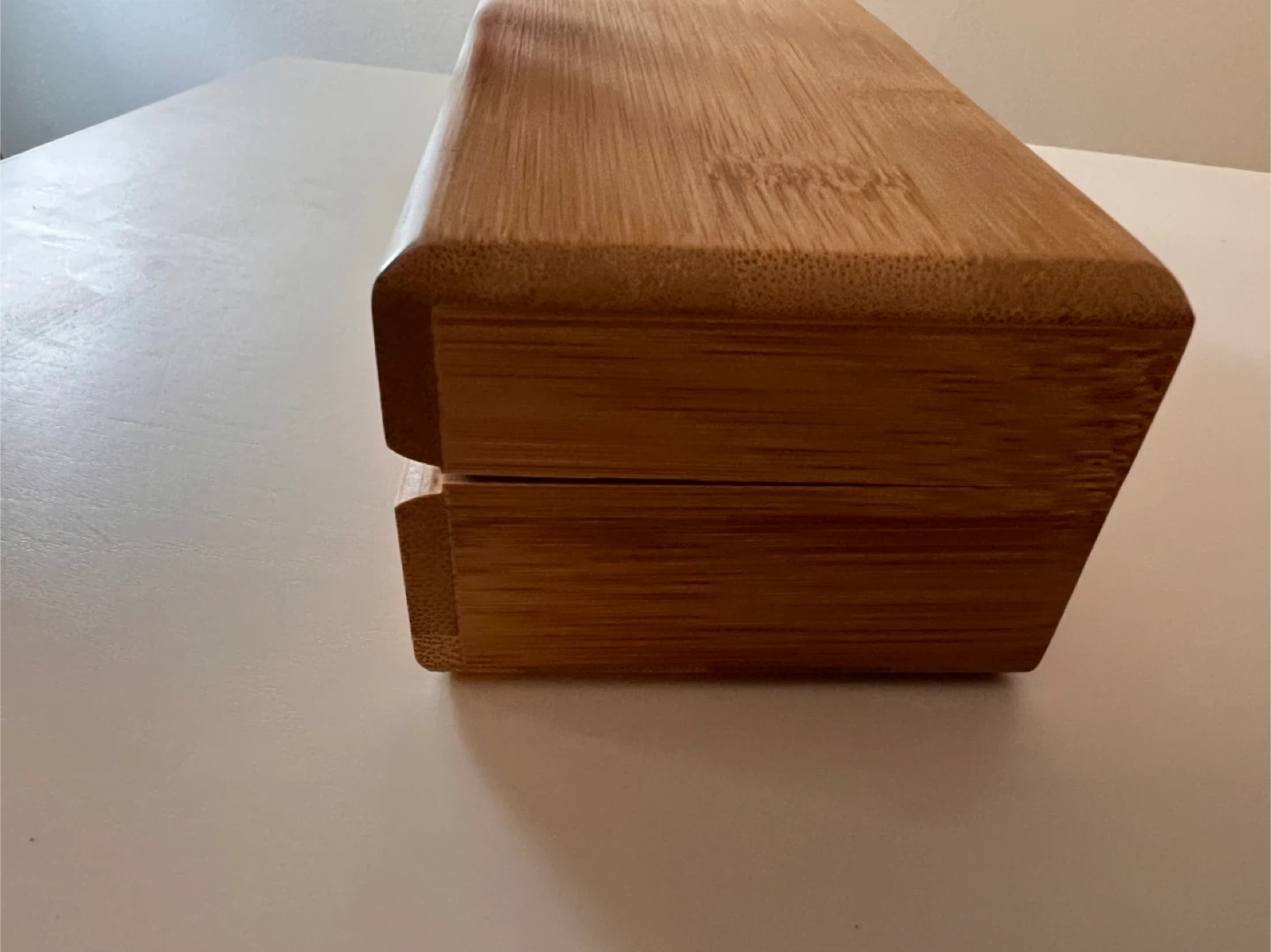 Here's a simple bamboo wooden box. Line eyeglass case. It's in good condition and ready to be used for storage or decoration