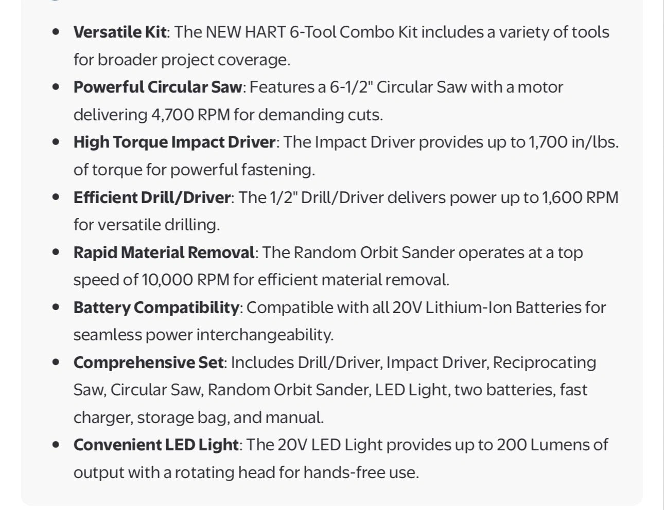 Versatile Kit: The NEW HART 6-Tool Combo Kit includes a variety of tools for broader project coverage.