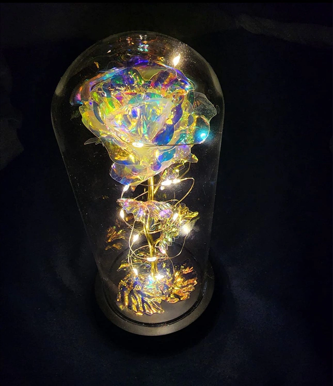 The Rose Flower in glass dome is perfect and impeccable. It is as full of infinite hope and beauty as colorful as a rainbow.