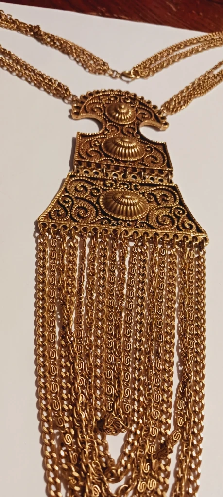 Vintage Vendome Gold Tone Ornate Filigree Multi Chain Dangle Necklace with Ornate Filigree Long Pendant with very intricate detailing on it. This is a Vendome vintage gold tone statement necklace.It features a unique design with multiple chains and intricate detailing. It's a bold piece that would add a touch of vintage glamour to any outfit!!!! The necklace is 18" long and the pendant is 8" long. Stunning piece of jewelry that resembles Middle Eastern Jewelry. Excellent condition. ALL MY PRICES ARE NEGOTIABLE !!