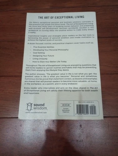 "The Art of Exceptional Living" by Jim Rohn is a motivational book that guides readers on how to gain wealth, enjoy happiness, and achieve unstoppable daily progress. Published by Sound Wisdom in 2022, this trade paperback is 192 pages long and written in English. The book covers topics such as personal growth, happiness, success, and business & economics, making it a valuable resource for those looking to improve their lives and achieve their goals.