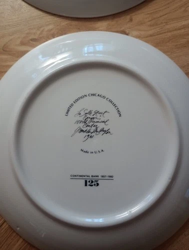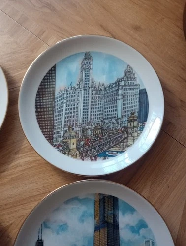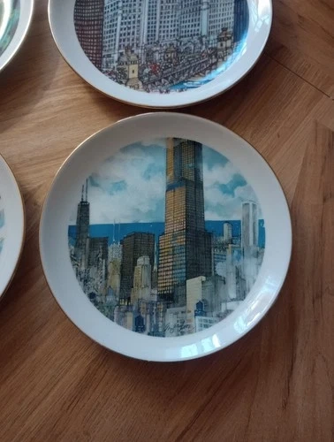 The plates featured here are The Water Tower Staunch Survivor of the Great Fire - 1972, The Wrigley Building - 1973, A Chicago Summer Evening - 1974, and LaSalle Street Canyon - 1981. They are vibrant and colorful scenes, full of iconic images from the City of Big Shoulders. I have others, so please feel free to check into those listings if this quartet doesn't contain the ones you're looking for.