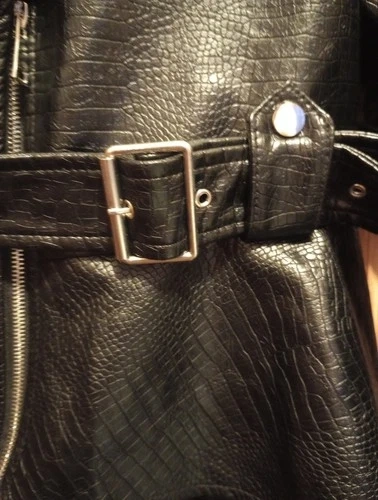 The Azalea Wang Astro Virgo X jacket in size 2X is a stylish and versatile outerwear piece for women. Made from polyester with a solid black color, this mid-length jacket features long sleeves and a full zip closure. The design includes accents such as buttons, buckles, and zippers, giving it a unique and fashionable look. Perfect for both casual and party occasions, this jacket is lined, collared, and belted for added comfort and style. The biker and motorcycle themes make it a trendy choice for the winter and fall seasons. Made in China, this jacket embodies a chic and edgy aesthetic.