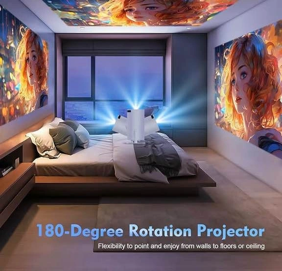 HY300 Pro Mini projector compatible 4K1080P doble banda WIFI6 5G inalámbrico 5.0 Bluetooth Android 11, 160 ANSI 260 lúmenes, 180 grados giratorio, corrección trapezoidal automática, proyector de video