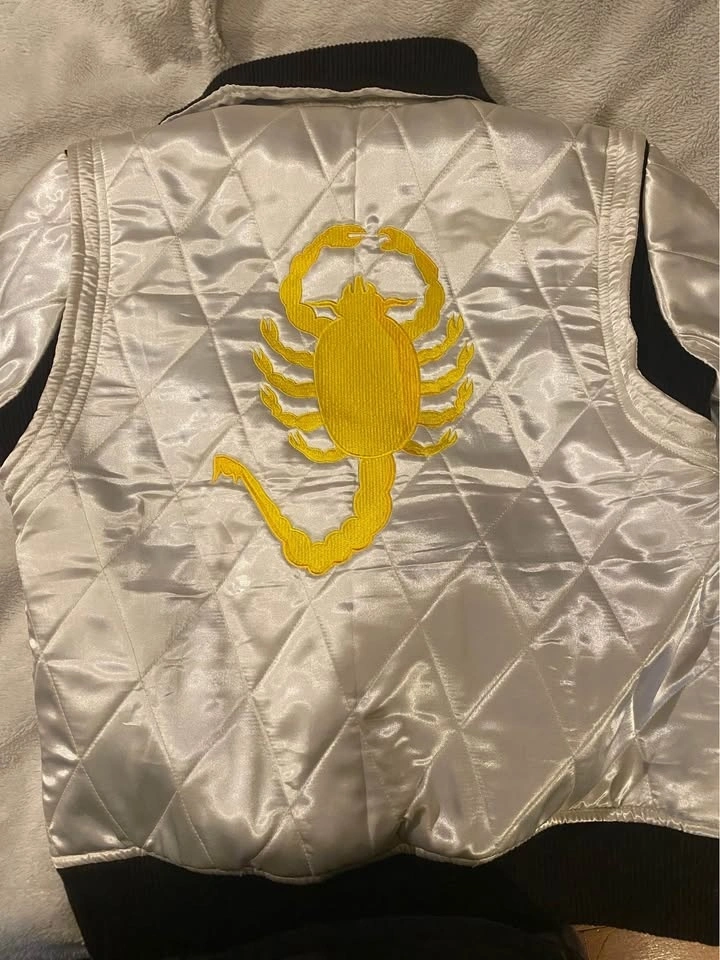 Silver Quilted Scorpion Bomber Jacket (Size M)