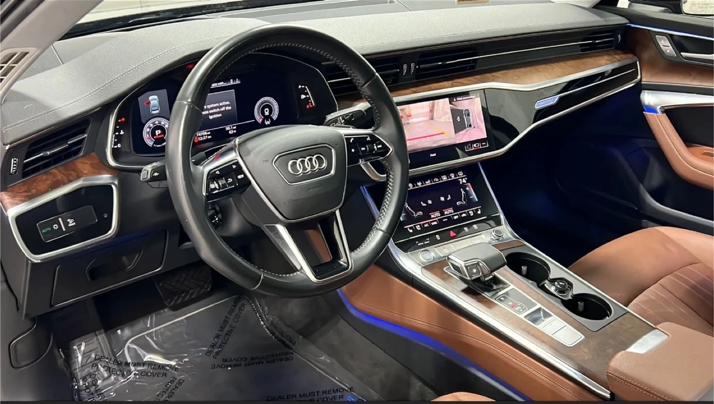 Selling an Audi A6 Sedan, showcasing both its interior and exterior. The interior features a stylish dashboard and comfortable seating, while the exterior boasts a sleek black finish and distinctive Audi design elements. Great condition!