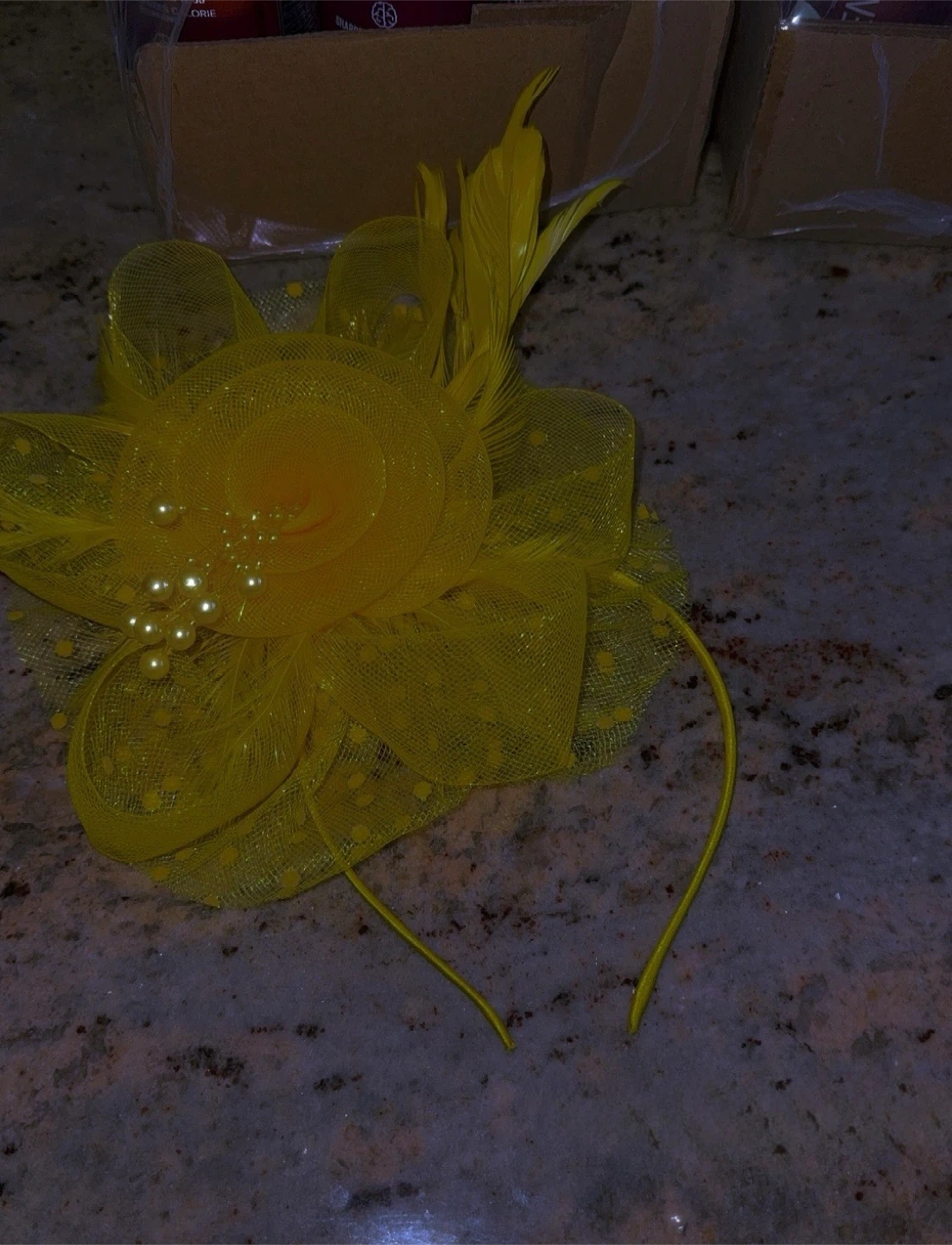 Brighten up your outfit with this lovely yellow flower fascinator! It features a decorative flower design with pearl accents and comes with both a clip and a headband for versatile styling options. Perfect for adding a touch of elegance to any occasion.