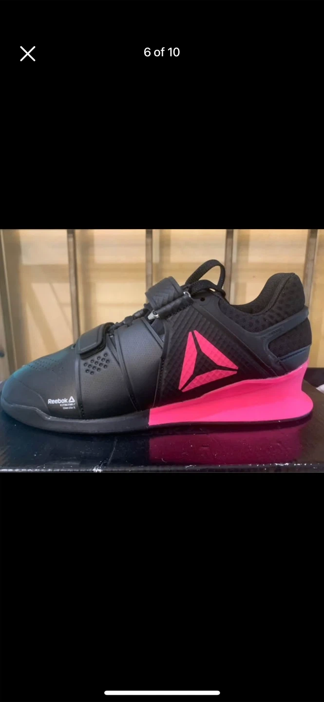 Selling a pair of Reebok Legacy Lifter II weightlifting shoes in black and pink. They come with the original box. These shoes are designed to provide stability and support during heavy lifts. Perfect for anyone serious about weightlifting!