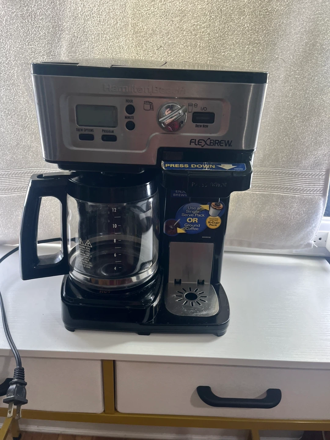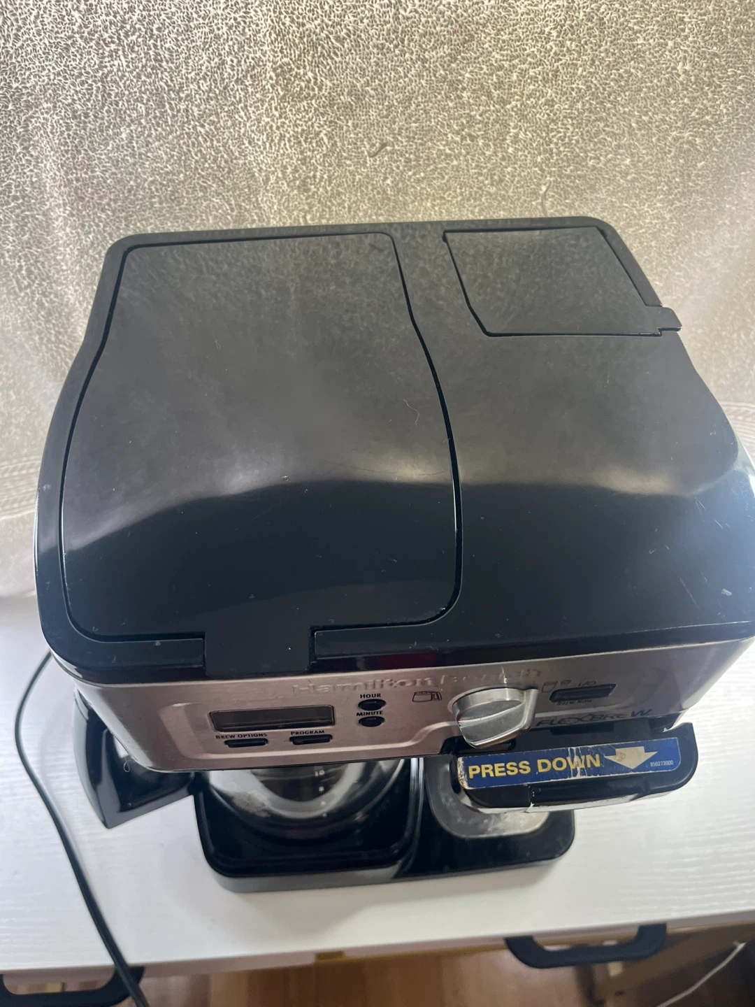 I'm selling a Hamilton Beach FlexBrew coffee maker. It can brew a full pot or a single serve cup using K-Cups or ground coffee. It's in great condition and ready for a new home!