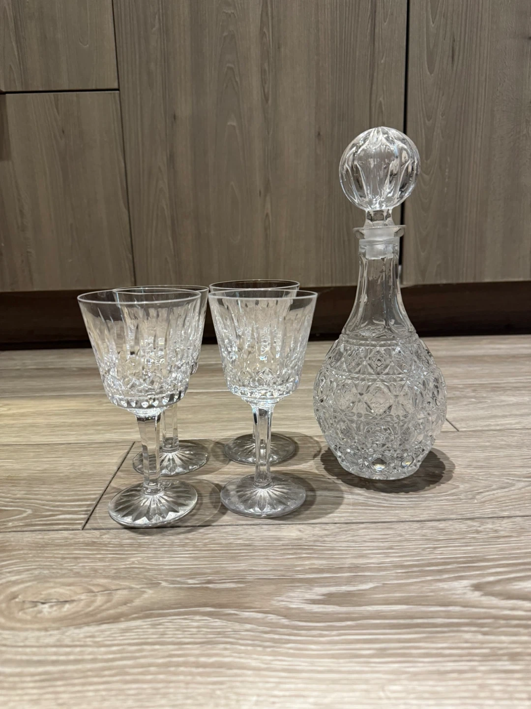 Vintage Crystal Decanter Set – Decanter + 4 Wine Glasses