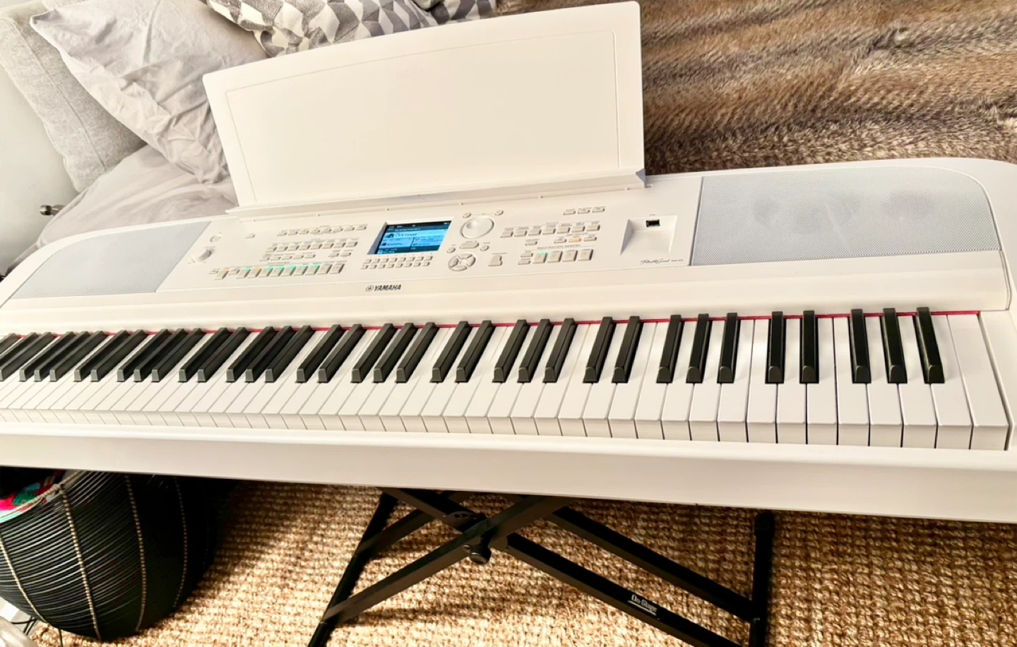 Selling a Yamaha DMX-670 portable grand digital piano in white, with 1 peddle, and adjustable, portable , like brand new, never programmed and was only used for piano practice for 3 months. MSRP $1,299, stand $100, cover $89. It has a sleek design that fits well in any room, it's fabulous! She is a ! I will throw in the desk cover for free!